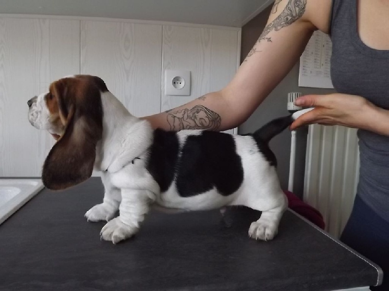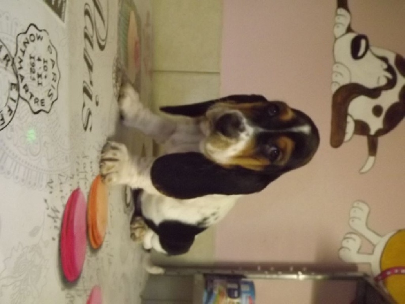 jonson est le plus gros des chiots de la portée un gros patapouff obsédé par la gamelle et son panier